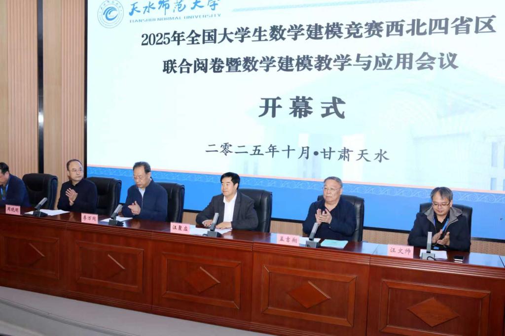 10月1日,2025年全国大学生数学建模竞赛西北四省区(甘肃、新疆、宁夏、内蒙古)联合阅卷暨数学建模教学与应用会议在天水师范大学开幕式隆重举行。来自四省区高校的68名数学建模领域专家学者齐聚“羲皇故里”天水,共同完成竞赛论文评阅工作,并围绕数学建模教育创新与实践应用展开深度研讨。本次会议由甘肃省数学会主办,天水师范大学承办,甘肃工业职业技术大学协办。